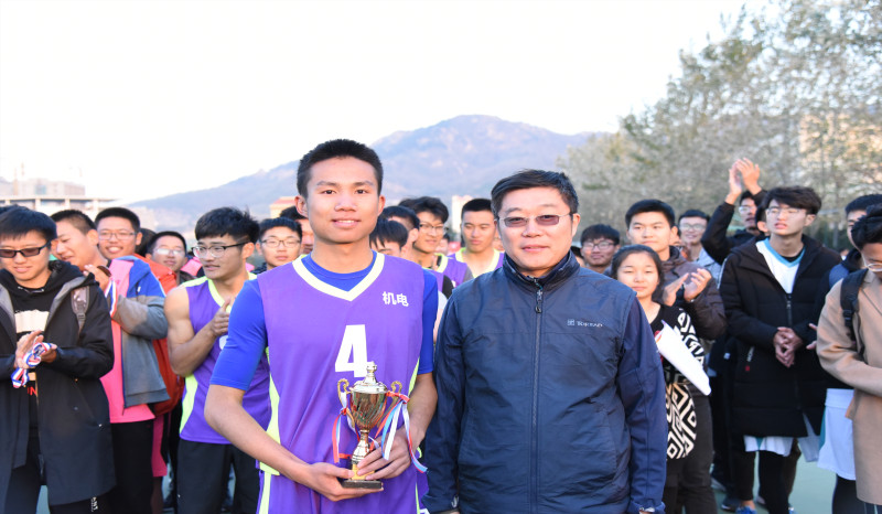 闭幕式上,主持人首先宣读了本届“迎新杯”篮球赛的最终获奖结果:舶机苍穹队赢得了本次比赛的最佳人气奖及季军,机械中韩队获得亚军,冠军由机油队获得,MVP球员则由向桢昊同学获得。最后王作辉书记为本届比赛致闭幕词,并且希望所有同学能够以本次比赛为契机,用强健的体魄和饱满的精神状态来迎接接下来的大学生活。