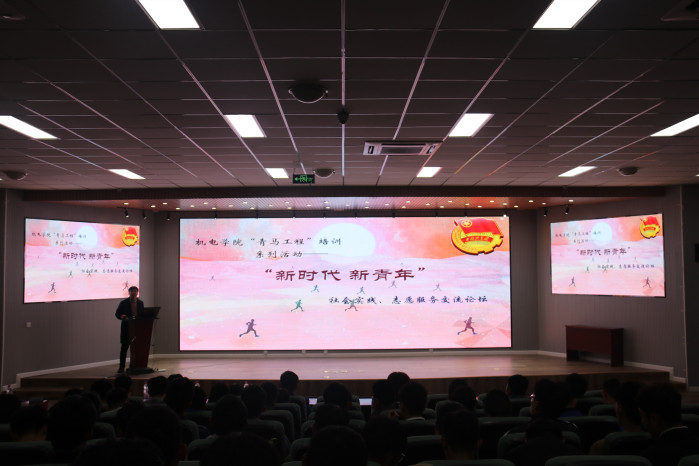 在D3-530会议室举行2018年“青马工程”培训系列活动之“新时代·新青年”社会实践、志愿者服务交流论坛。本次活动邀请到了董海鸣、许昊、王敏(推免至哈尔滨工业大学读博)、秦健(推免至山东大学读研)四位同学,分别从社会实践、志愿服务、科技创新、学习方法等方面向大家作了经验交流,团学干部代表参加了此次活动,活动由分团委辅导员苗清主持。
