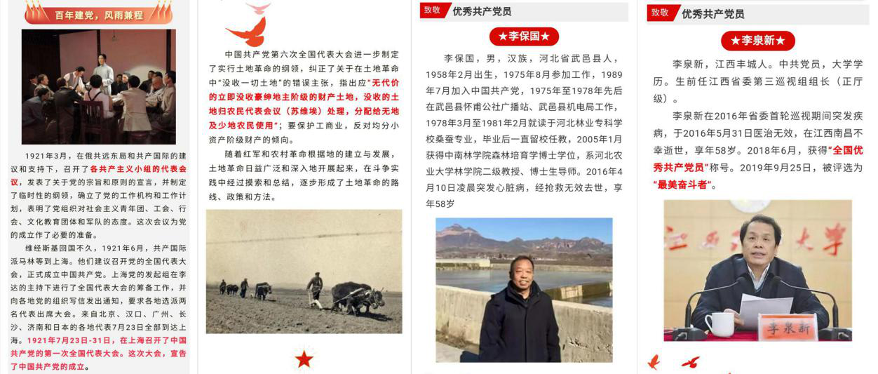 团委创建“星火红途”红色文化宣传专题公众号,献礼中国共产党百年征程。铭记英烈功绩,担当时代使命,开展以“慎终追远,缅怀先烈”为主题的各项活动,参观革命纪念馆、重温红色历史、开展红色故事演讲、在网上祭奠英烈等,以形式多样的活动追寻红色记忆。
