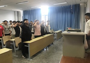 第三部分:重温入党誓词。共青团作为共产党的预备军,应时刻牢记自己的责任与使命。发挥青年团员的作用,投身新时代的建设。卢宸旭身为班长,同时也是班内的入党积极分子,带领大家进行宣誓,使整个团支部又注入了热血。