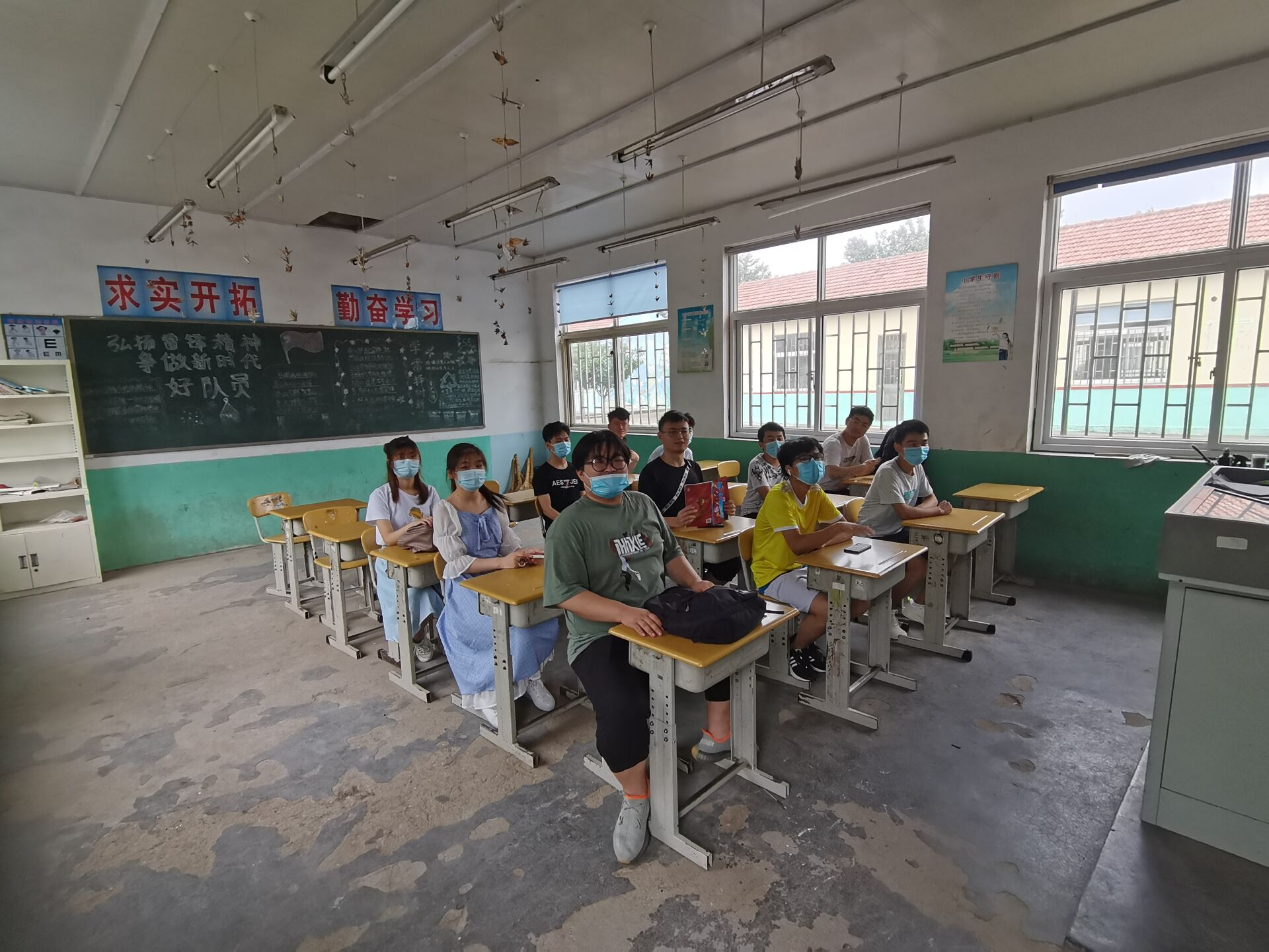 占地面积并不是很大。初见时,队员们甚至没有意识到这里是一所小学。简陋的校舍,大面积的绿化,无不提醒着我们所在之处,并不是我们所熟悉的城市。“三下乡”目的何在?正是让大学生看到这一切,了解这一切,改善这一切。队员们纷纷表示,眼前所看到的景象令人感到震撼,平日里习惯了城市的氛围,却不知很多地方和自己想象中的并不一样。队长杨增钰同学则表示,不要因为所见所闻而感时伤怀,我们应该更多地去了解,是什么造成的这一切,而我们作为新时代青年,又该如何行动,这才是此行的目的。众人深以为然,于校门口拍照留念。