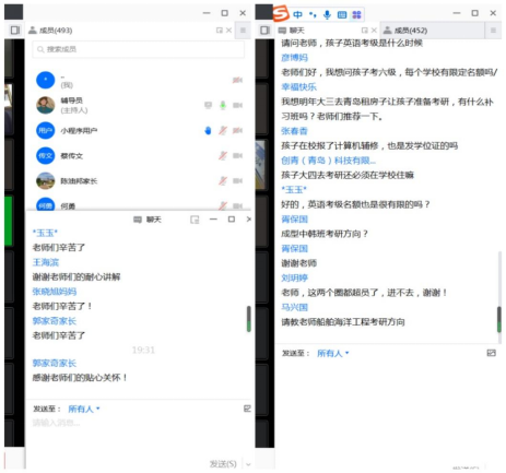 设置了互动回答环节,家长们热情高涨、积极提问,三位辅导员老师对家长的提问进行了详细解答,此次云家长会在轻松热烈的氛围中圆满结束。