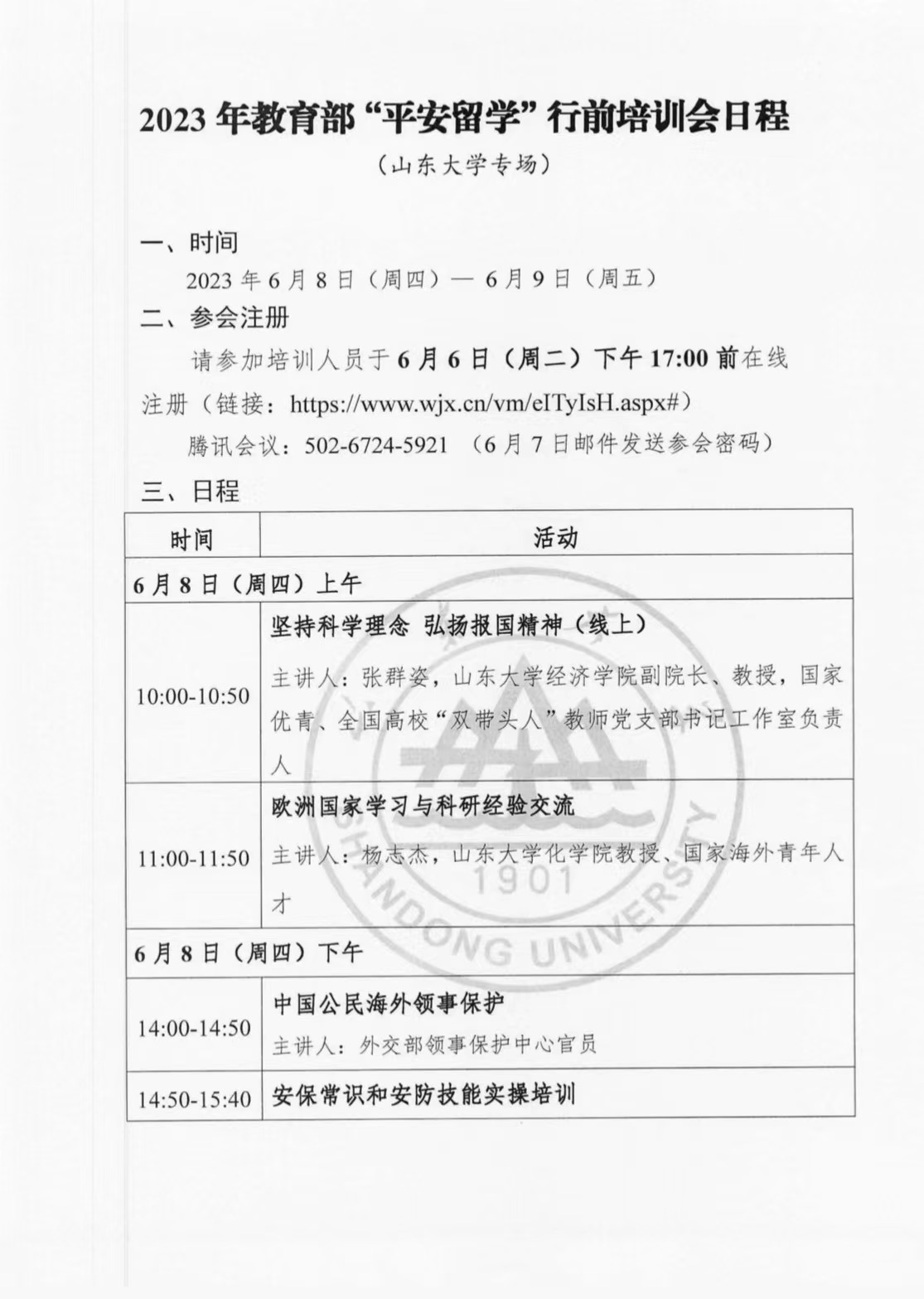 根据《关于做好2023年“平安留学”行前培训有关工作的通知》(教留服函〔2023〕21号),山东大学于6月8日(周四)—6月9日(周五)举行“平安留学”行前培训会(山东大学专场)。 磁力搜索
